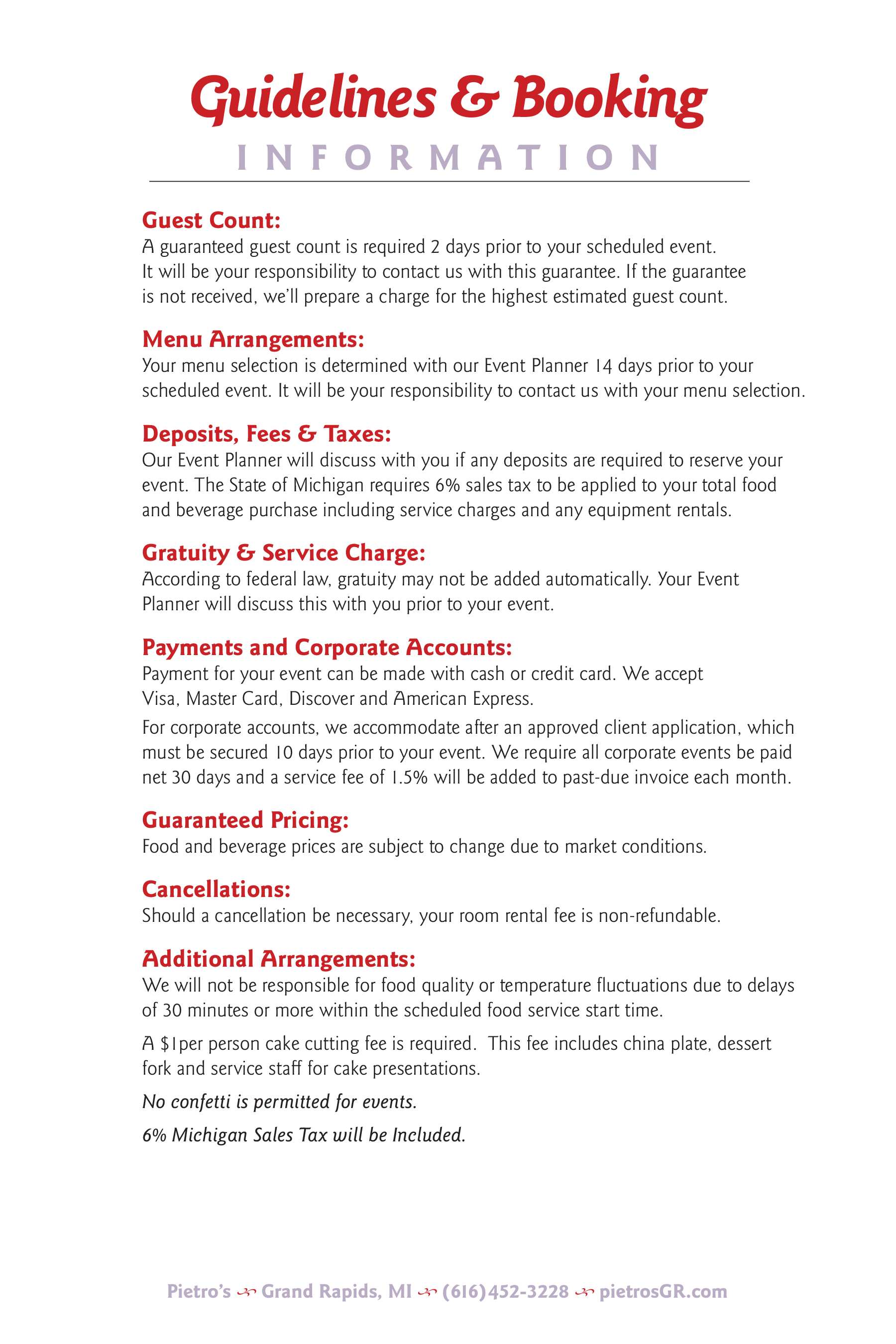 Catering Info