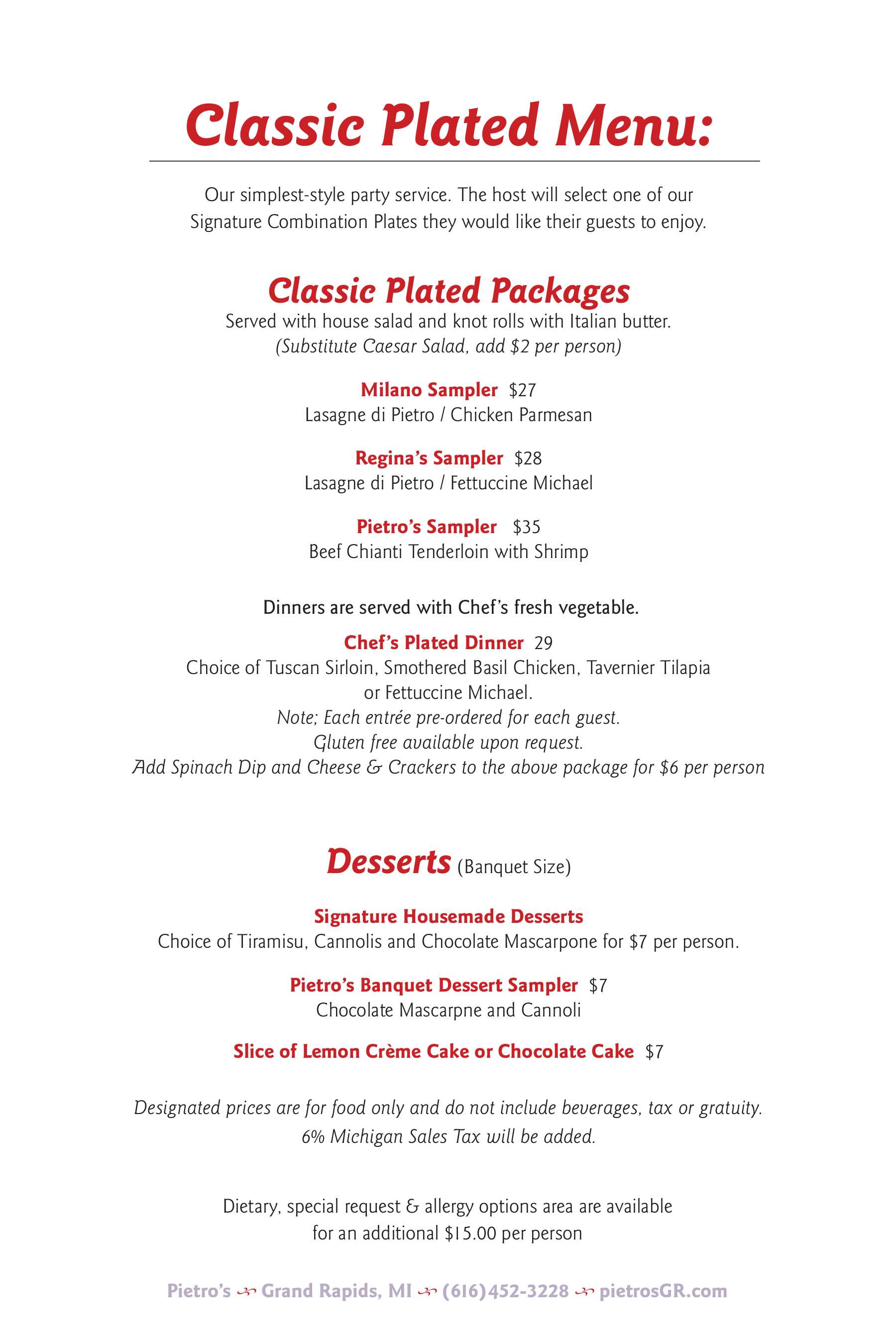 Banquet Menu