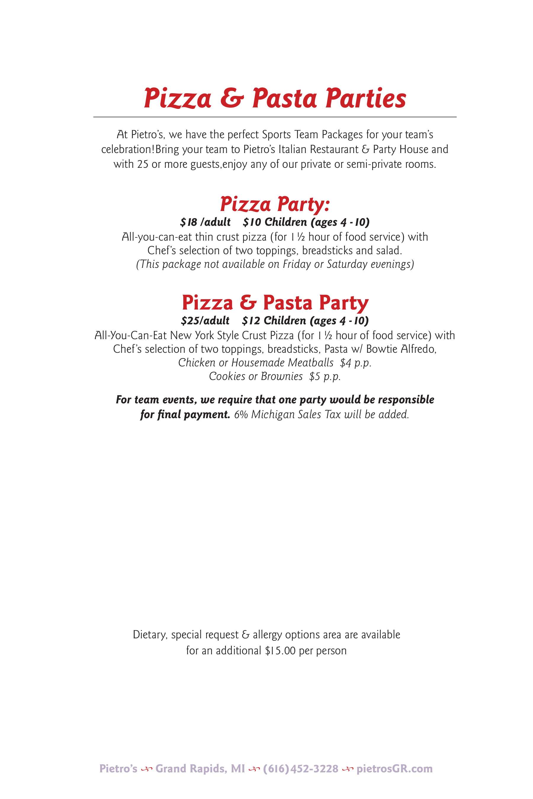 Party Room Information & Availability